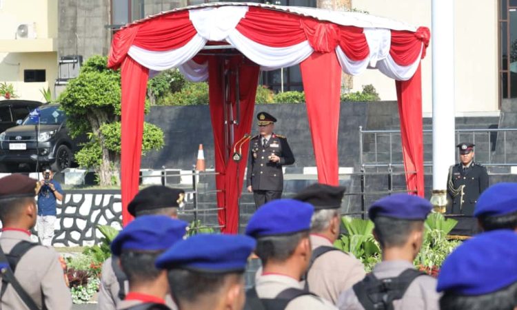 Dengan mengenakan pakaian dinas lengkap upacara, Kapolda bertindak sebagai Inspektur Upacara. Suasana khidmat terasa seiring dengan pengibaran Sang Saka Merah Putih, diiringi alunan lagu Indonesia Raya oleh korps musik Polri, dan pembacaan naskah Pancasila serta Pembukaan UUD 1945.